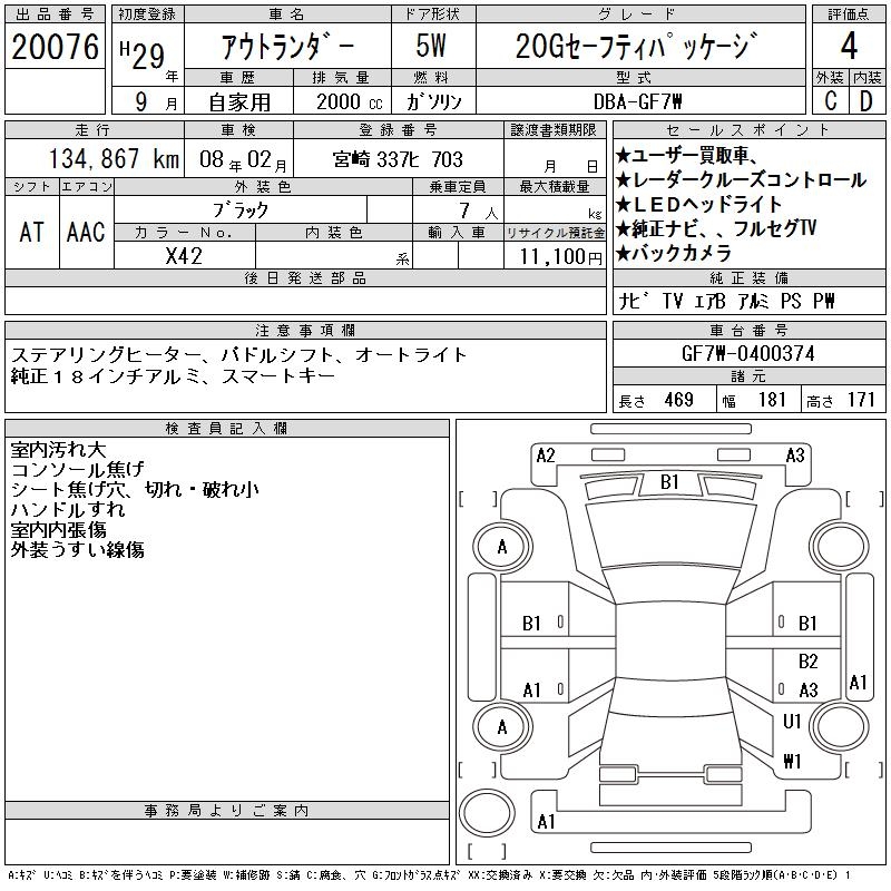 MITSUBISHI OUTLANDER 20G SAFETY PACKAGE - лот 20076