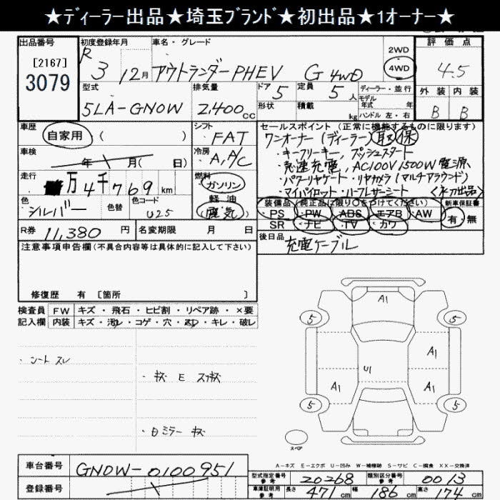 MITSUBISHI OUTLANDER 4WD PHEV G 5 PERSON - лот 3079