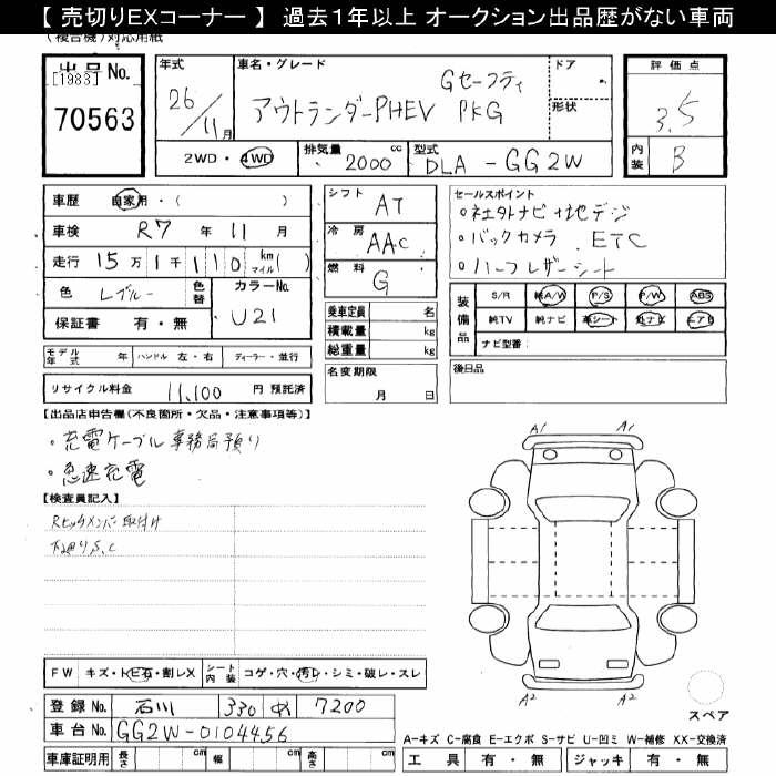 MITSUBISHI OUTLANDER 4WD PHEV G SAFETY PACKAGE - лот 70563