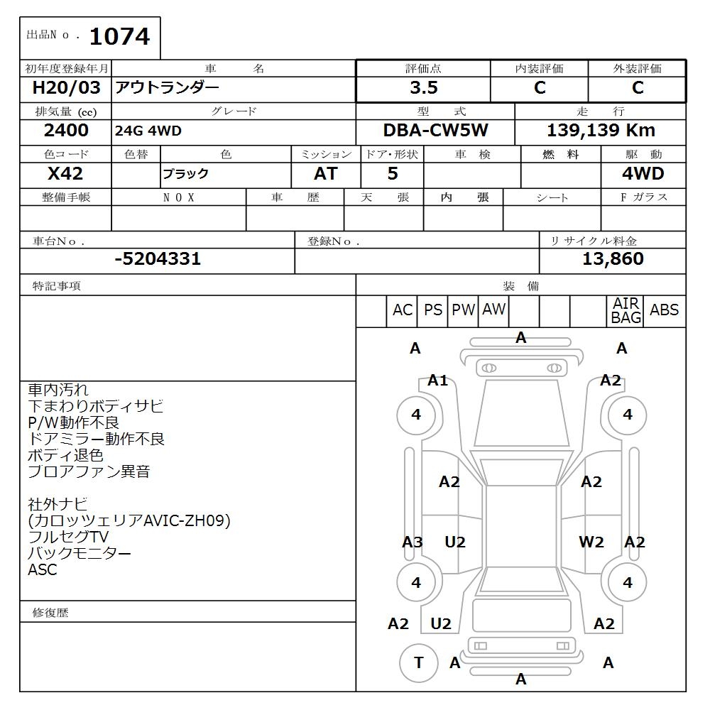 MITSUBISHI OUTLANDER 24G 4WD - лот 1074