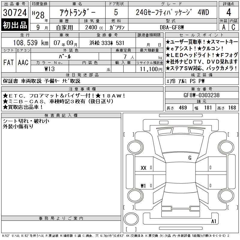 MITSUBISHI OUTLANDER 24G SAFETY PACKAGE 4WD - лот 30724