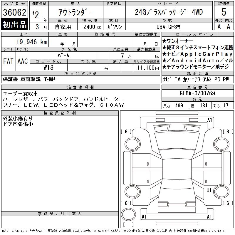 MITSUBISHI OUTLANDER 24G PLUS PACKAGE 4WD - лот 36062