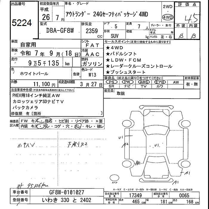 MITSUBISHI OUTLANDER 4WD 24G SAFETY PACKAGE - лот 5224
