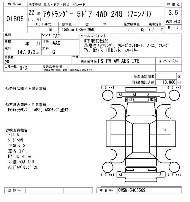 MITSUBISHI OUTLANDER 24G (7 SEAT ) - лот 1806