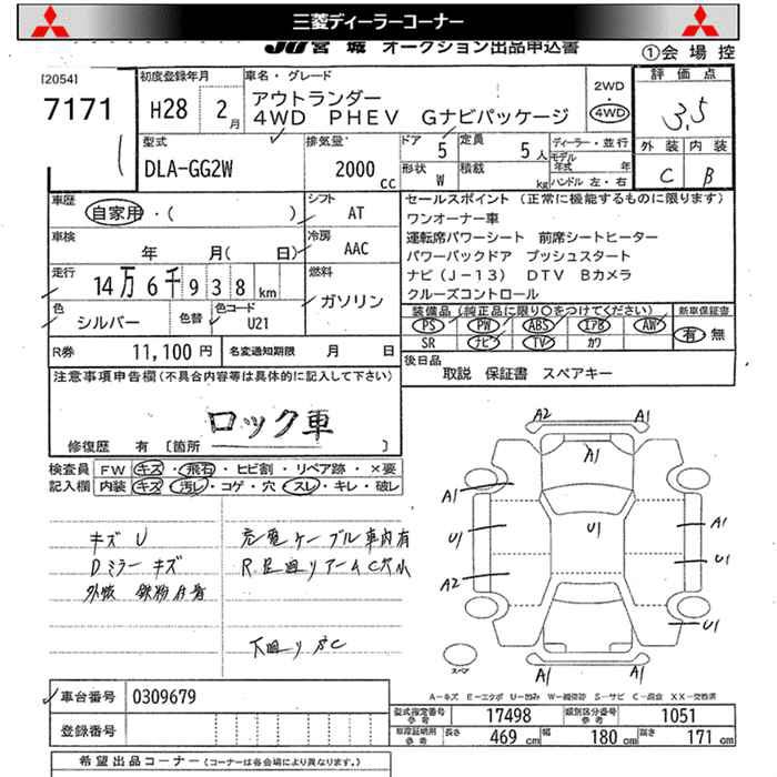 MITSUBISHI OUTLANDER 4WD PHEV G NAVIGATION PACKAGE - лот 7171