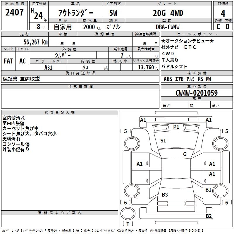 MITSUBISHI OUTLANDER 20G 4WD - лот 2407