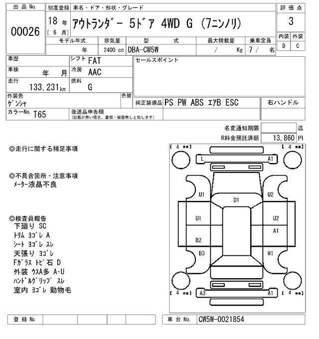 MITSUBISHI OUTLANDER G (7 SEAT ) - лот 26