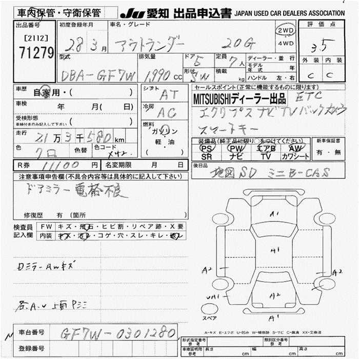 MITSUBISHI OUTLANDER 20G - лот 71279