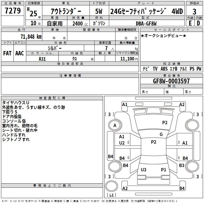 MITSUBISHI OUTLANDER 24G SAFETY PACKAGE 4WD - лот 7279