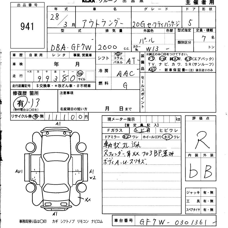MITSUBISHI OUTLANDER 20G SAFETY PACKAGE - лот 941