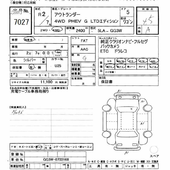 MITSUBISHI OUTLANDER 4WD PHEV G LTD EDITION - лот 7027