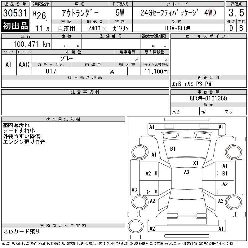 MITSUBISHI OUTLANDER 24G SAFETY PACKAGE 4WD - лот 30531