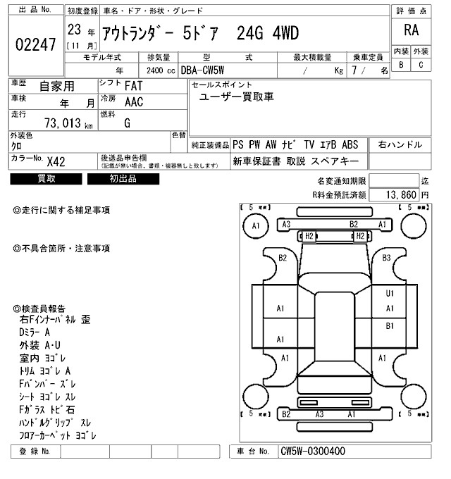 MITSUBISHI OUTLANDER 24G 4WD - лот 2247