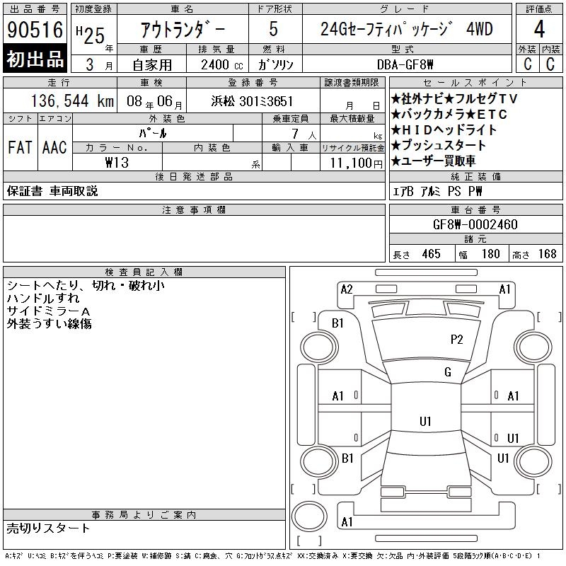 MITSUBISHI OUTLANDER 24G SAFETY PACKAGE 4WD - лот 90516
