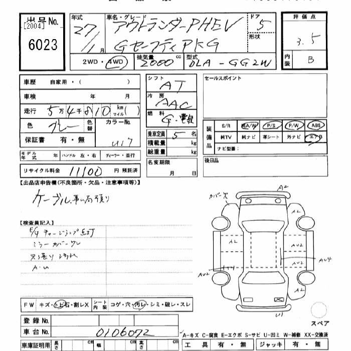 MITSUBISHI OUTLANDER 4WD PHEV G SAFETY PACKAGE - лот 6023