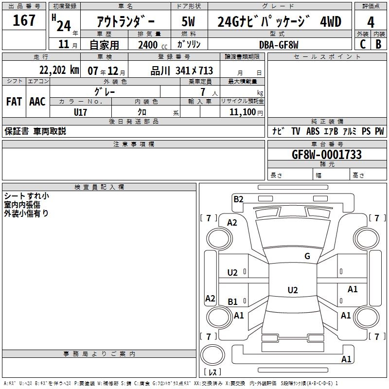 MITSUBISHI OUTLANDER 24G NAVIGATION PACKAGE 4WD - лот 167
