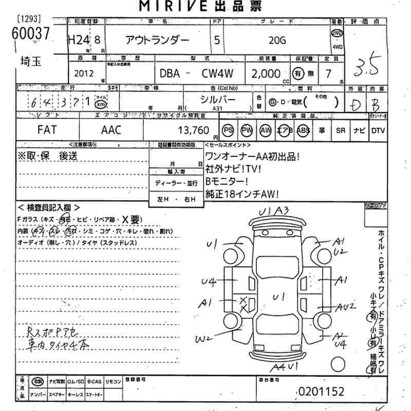 MITSUBISHI OUTLANDER 20G - лот 60037