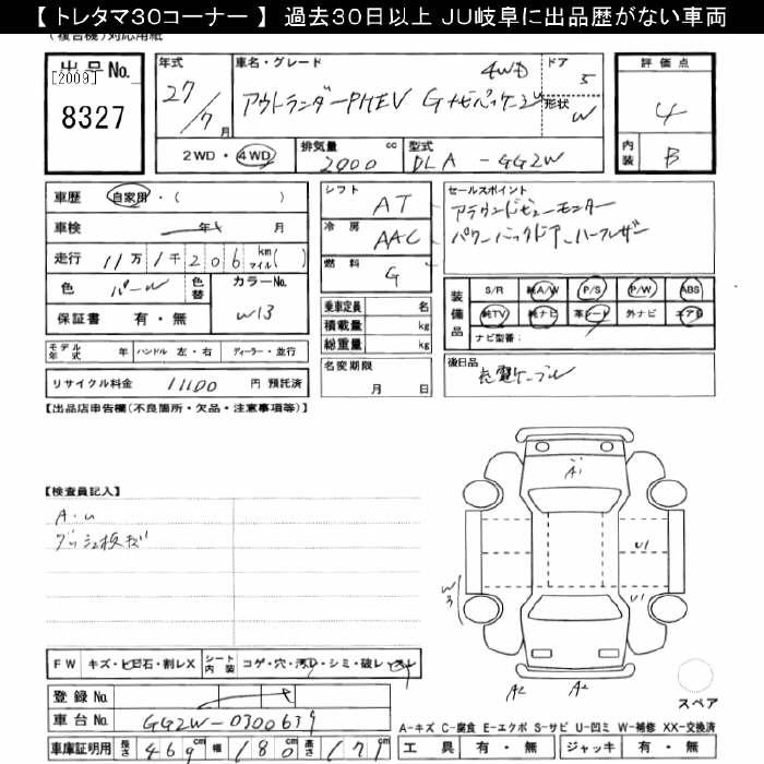 MITSUBISHI OUTLANDER 4WD PHEV G NAVIGATION PACKAGE - лот 8327