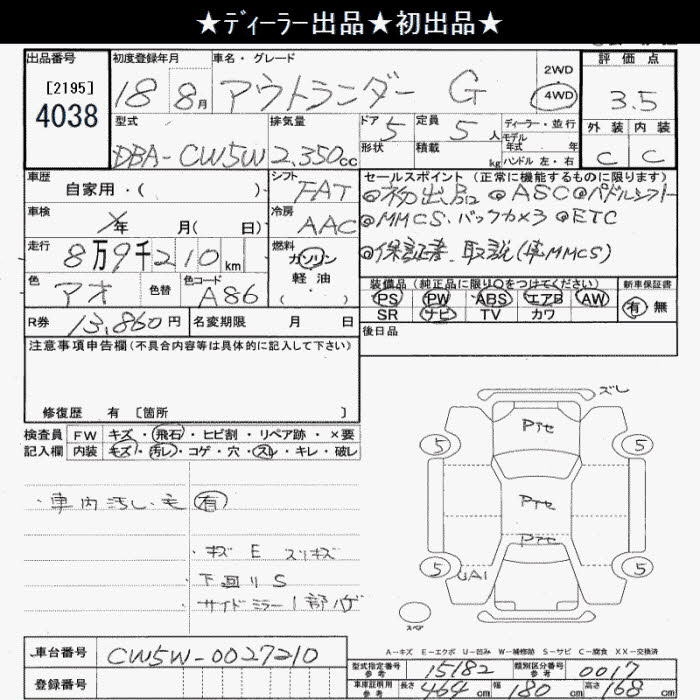 MITSUBISHI OUTLANDER 4WD G 5 PERSON - лот 4038