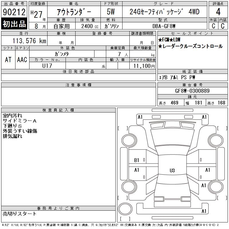 MITSUBISHI OUTLANDER 24G SAFETY PACKAGE 4WD - лот 90212