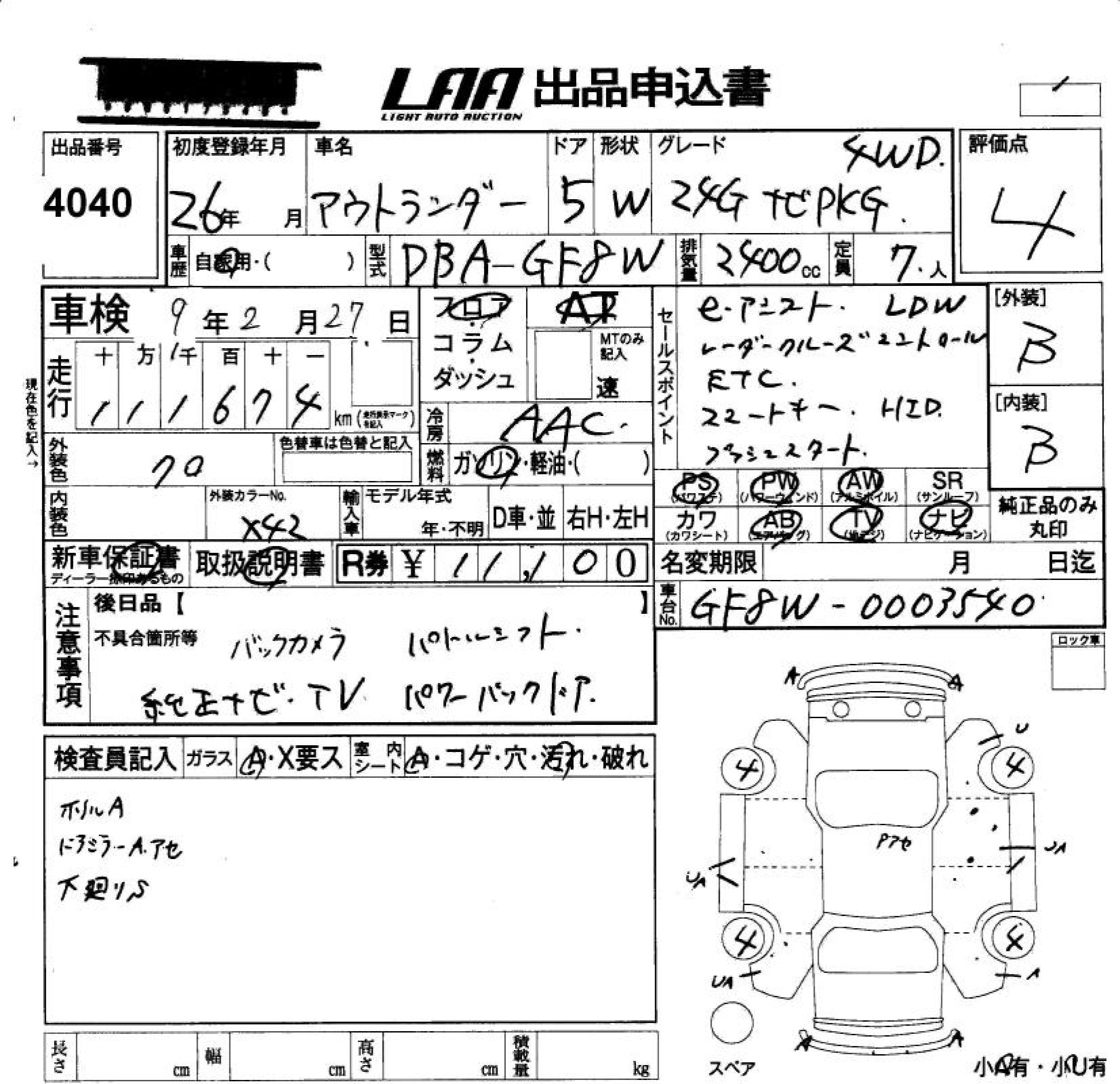 MITSUBISHI OUTLANDER 24G NAVIGATION PACKAGE 4WD - лот 4040