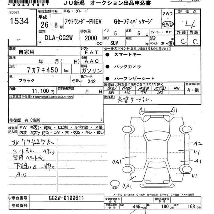 MITSUBISHI OUTLANDER 4WD PHEV G SAFETY PACKAGE - лот 1534