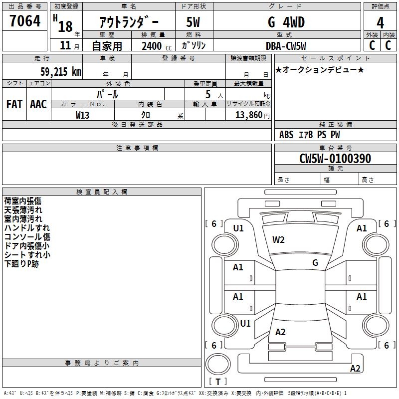 MITSUBISHI OUTLANDER G 4WD - лот 7064