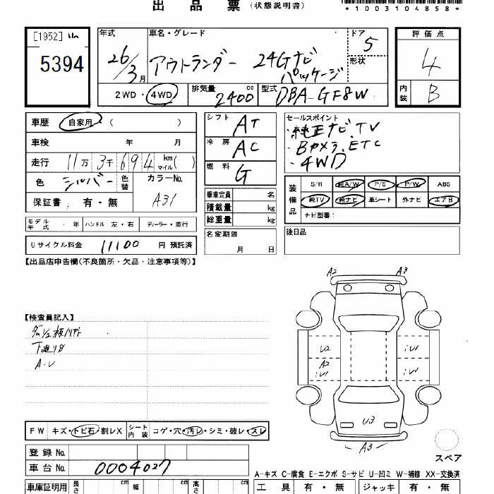 MITSUBISHI OUTLANDER - лот 5394