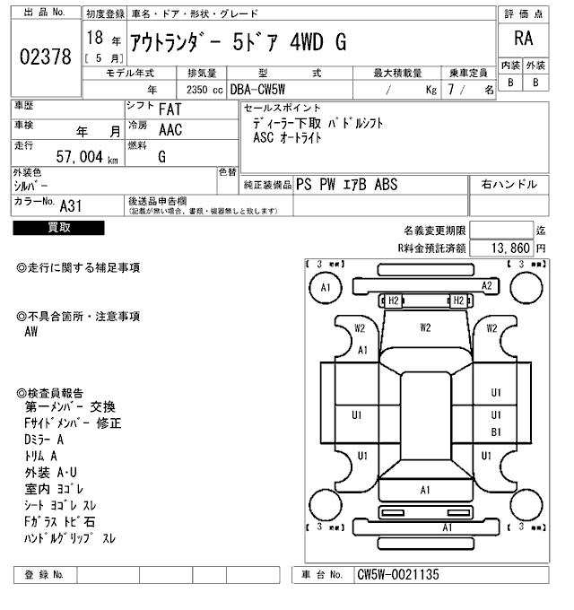 MITSUBISHI OUTLANDER G - лот 2378