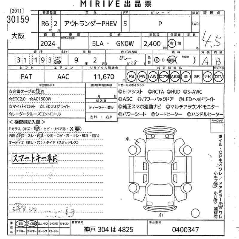 MITSUBISHI OUTLANDER PHEV - лот 30159
