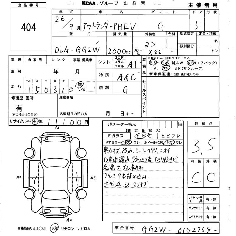 MITSUBISHI OUTLANDER PHEV - лот 404