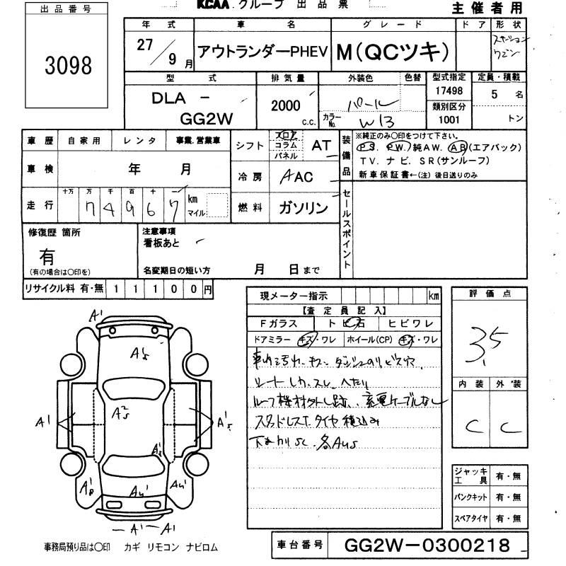 MITSUBISHI OUTLANDER PHEV - лот 3098