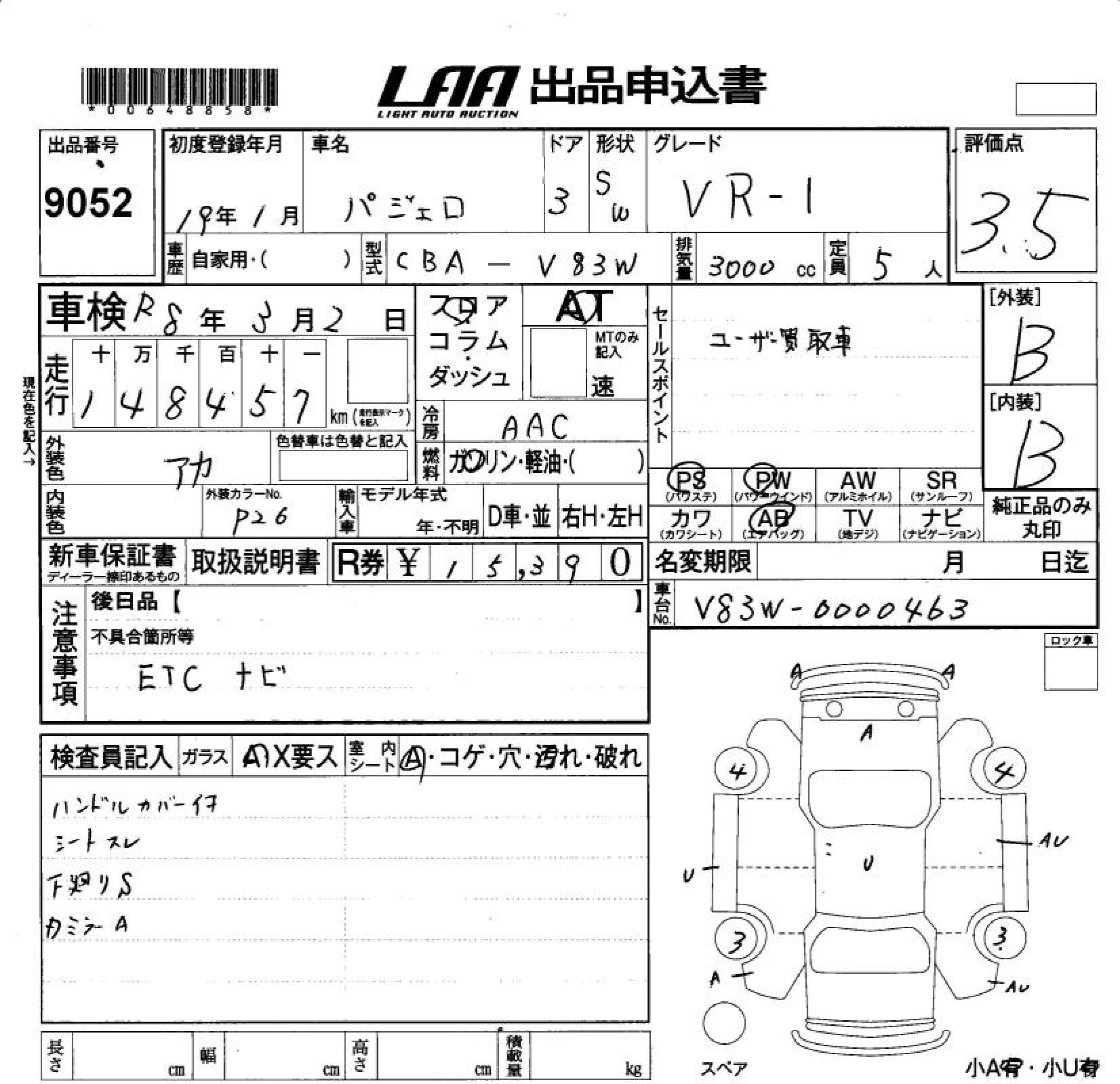 MITSUBISHI PAJERO VR-. - лот 9052
