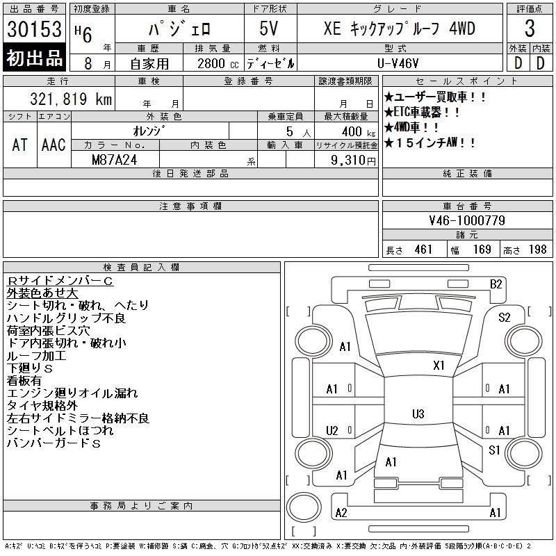 MITSUBISHI PAJERO XE KICK UP ROOF 4WD - лот 30153