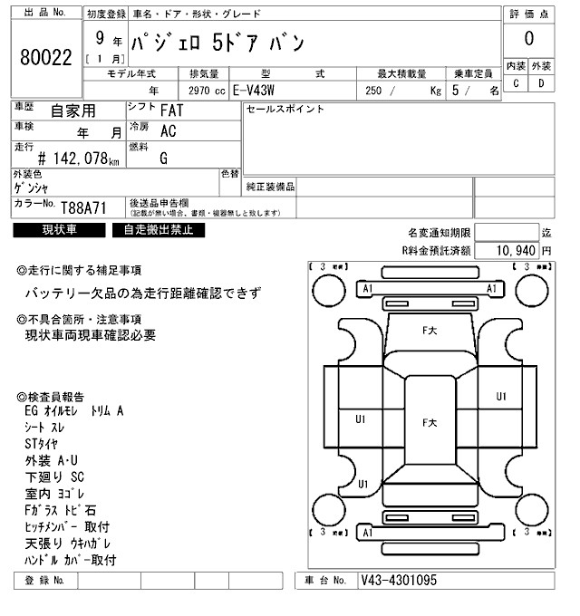 MITSUBISHI PAJERO - лот 80022