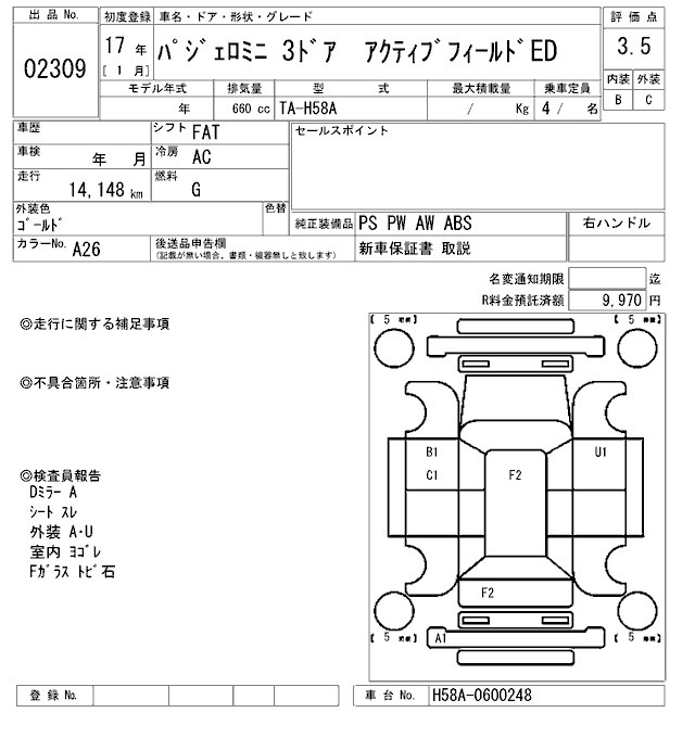 MITSUBISHI PAJERO MINI - лот 2309