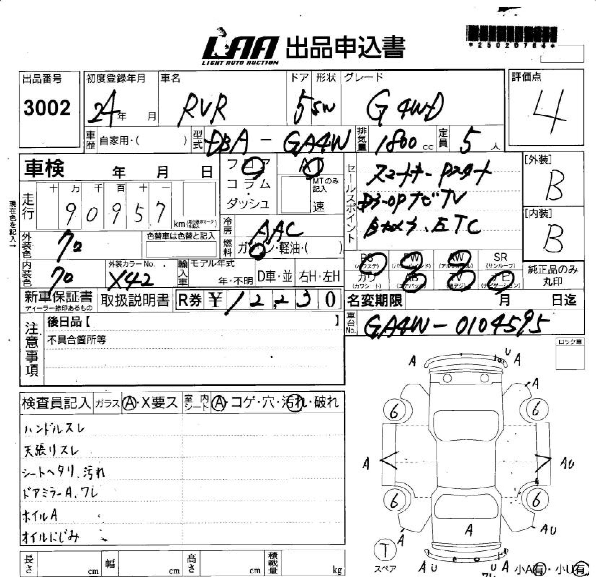 MITSUBISHI RVR G 4WD - лот 3002