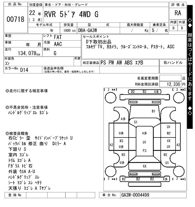 Оборудование: PS PW AW ABS подушка безопасности расстояние 134,078km депозит уплачен 12,330 иен