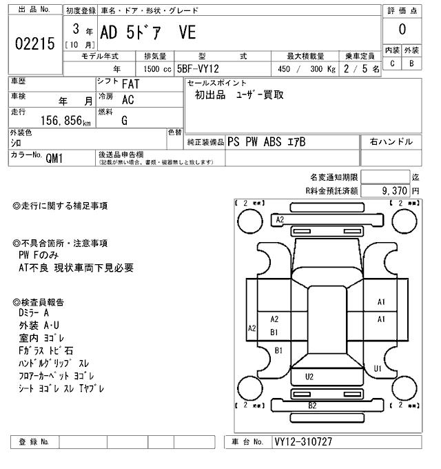 NISSAN AD VE - лот 2215