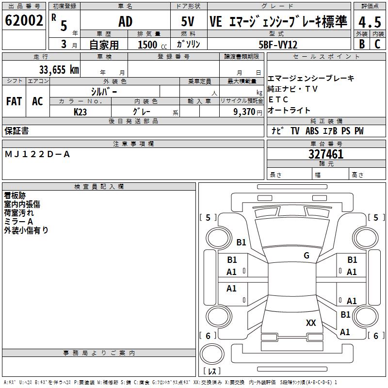 NISSAN AD VEEMA-JENSI- BRAKE HYOU - лот 62002