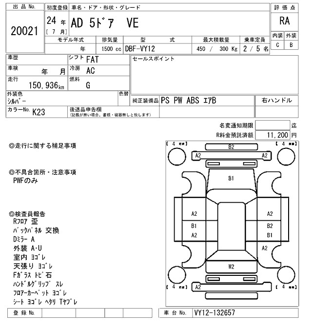 NISSAN AD VE - лот 20021