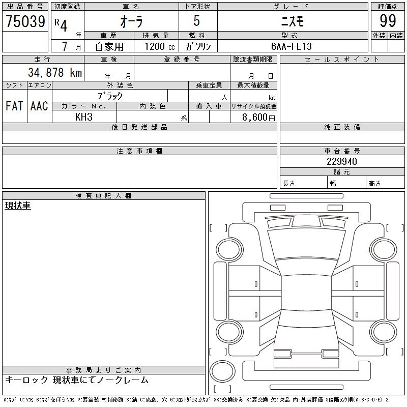 NISSAN AURA - лот 75039