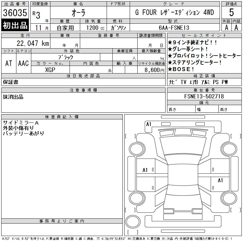 NISSAN AURA - лот 36035