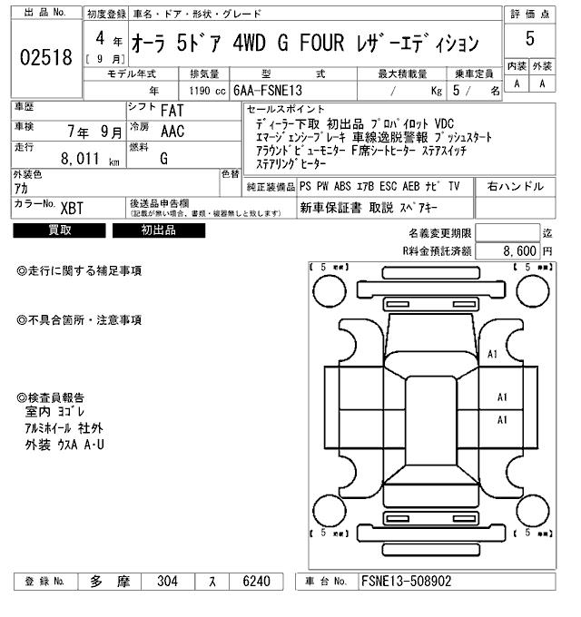 NISSAN AURA G FOUR LEATHER EDITION - лот 2518