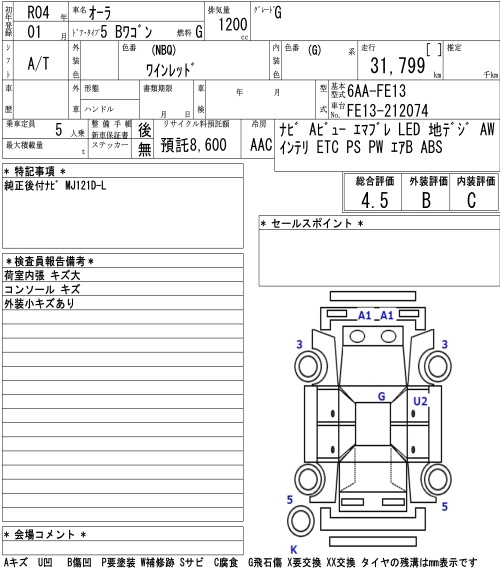 NISSAN AURA G - лот 1021