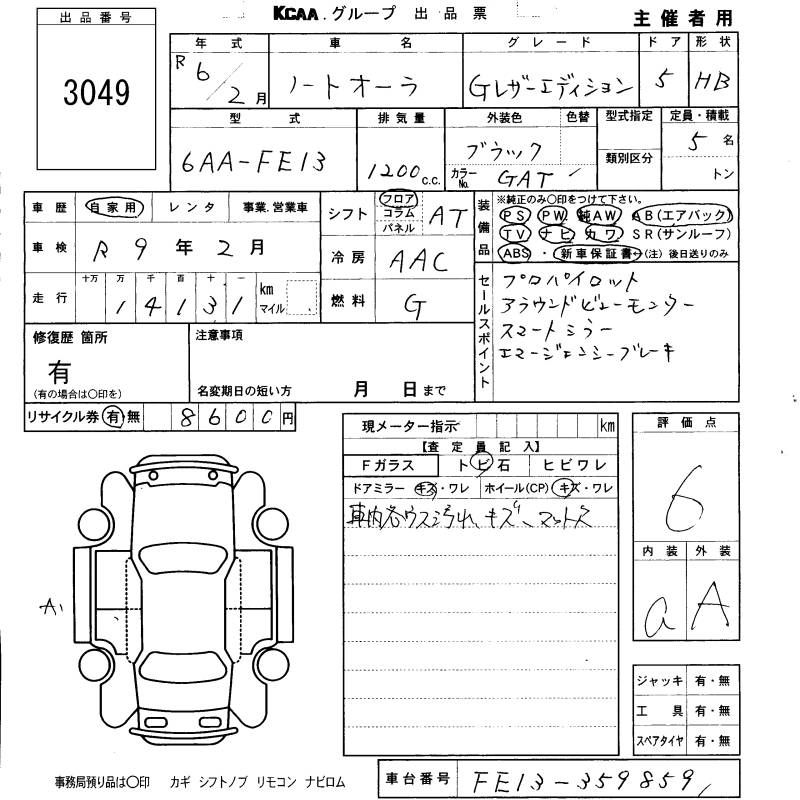 NISSAN AURA G LEATHER EDITION - лот 3049