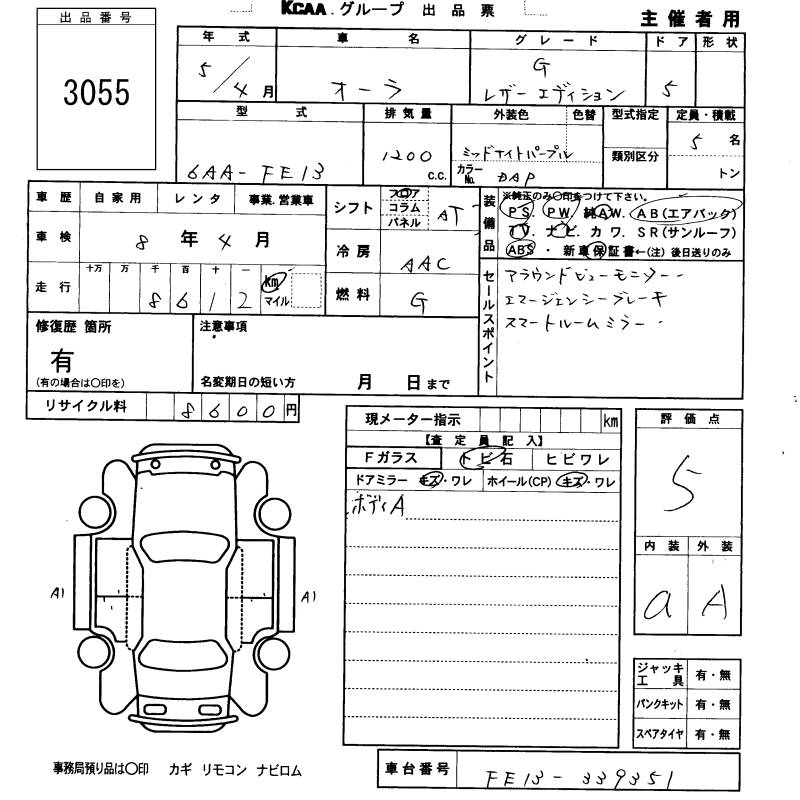 NISSAN AURA G LEATHER EDITION - лот 3055