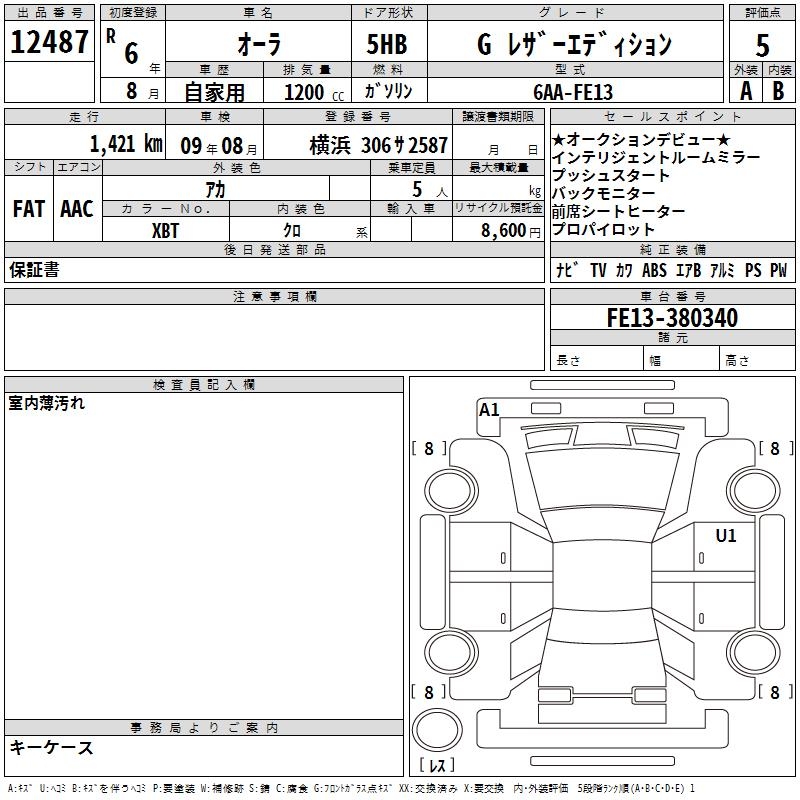 NISSAN AURA G LEATHER EDITION - лот 12487