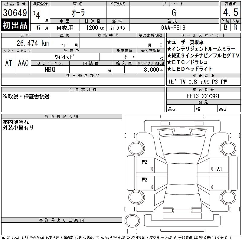 NISSAN AURA G - лот 30649