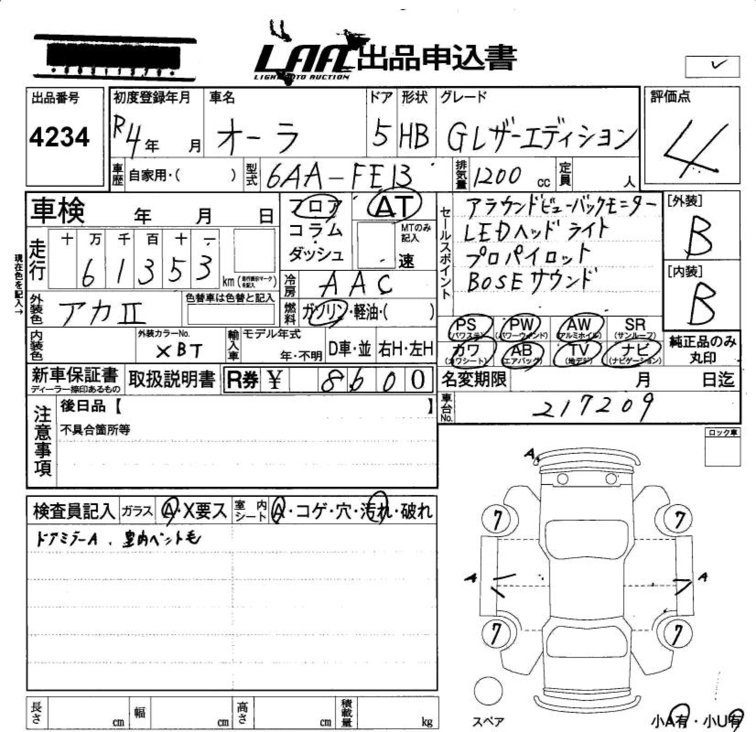NISSAN AURA G LEATHER EDITION - лот 4234